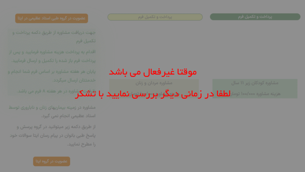 جهت دریافت مشاوره از طریق دکمه پرداخت و تکمیل فرم